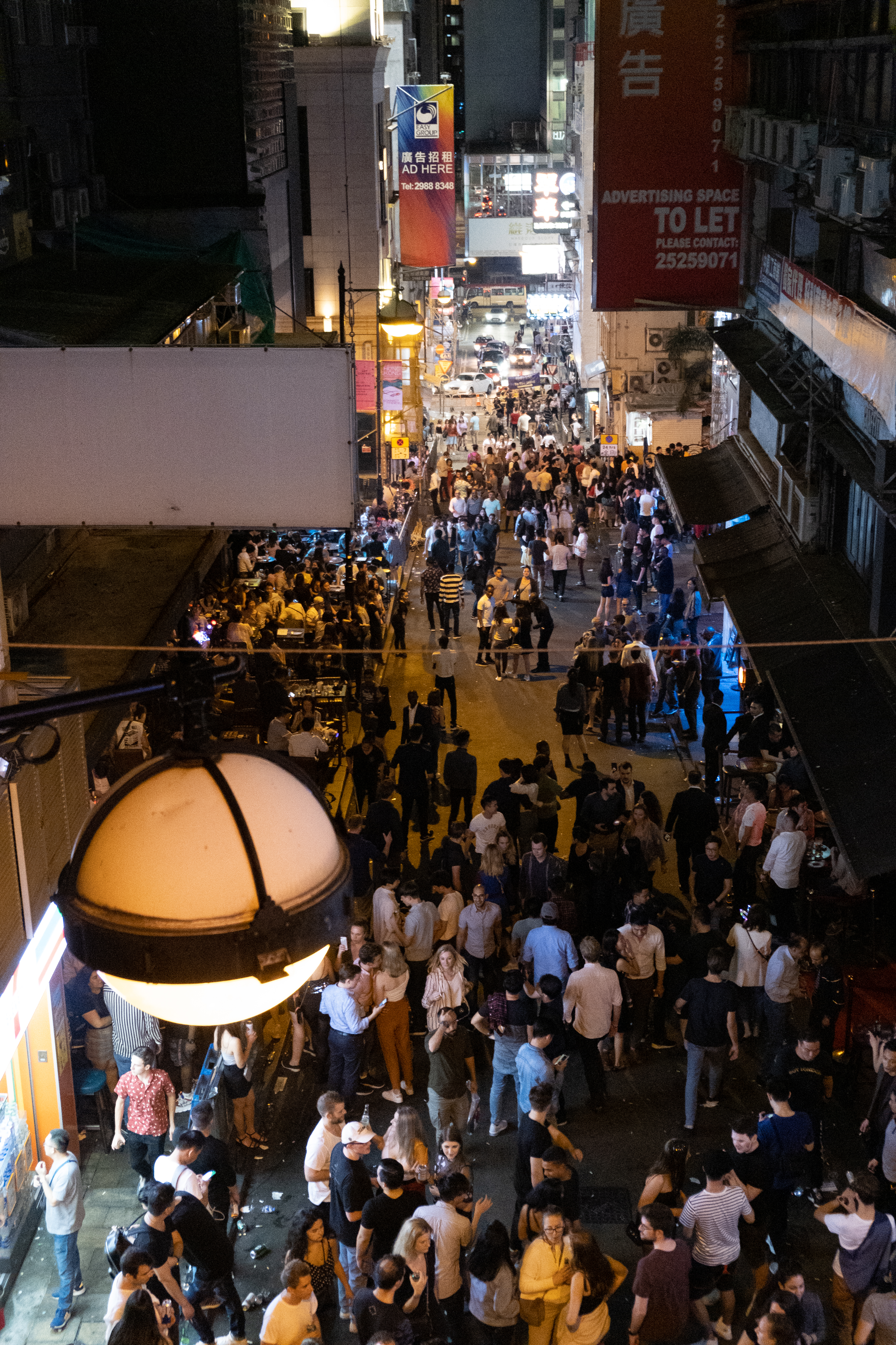 Lan Kwai Fong in a bird-view angle. Many people were gathering in Lan Kwai Fong on a saturday night.