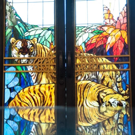 Despite the many characteristics of the mansion, the most precious item in this castle would be a fusion between Chinese and Italian culture: a semi-transparent door, called The “Moongate”. It has adapted the circular design of traditional Chinese doors and the tigers, lions rocks, and bamboos drawn on the glass contain Chinese concepts. A fun twist on the “Chinessness” was created by incorporating coloured glass usually seen in churches. “Moongate” is undeniably the most eye-catching piece of art in this glorious mansion.